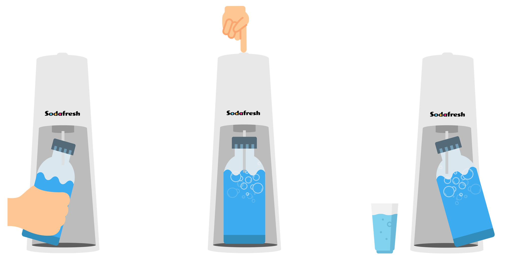 Tekan tombol bagian atas dari Sodafresh Rhapsody untuk mebuat Sparkling Water yang menyegarkan. Anda bisa menetapkan seberapa kuat soda yang Anda kehendaki. Setiap orang memiliki selera yang berbeda.