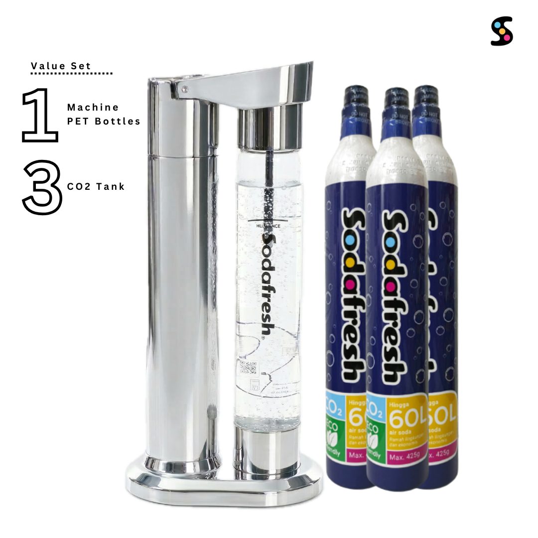 3 PET bottles (1000ml, 800ml carbonation capacity, maximum use: 24 month. More info here)